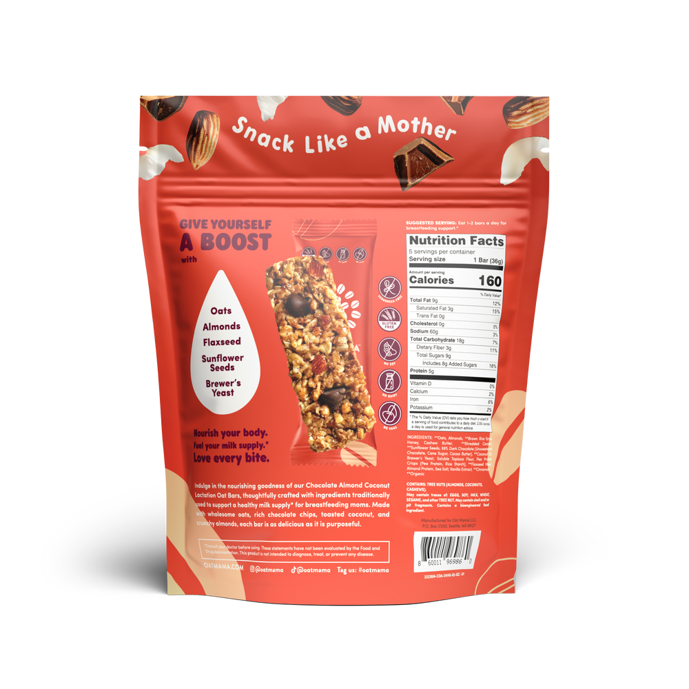 When we first launched Oat Mama, our original lactation granola bars had a passionate following of devoted moms—we made tens of thousands by hand each month with our small but mighty team of bakers. Now, we’re bringing them back with a fresh update: the same nostalgic, indulgent taste you loved, now with added protein to keep you feeling even more nourished.