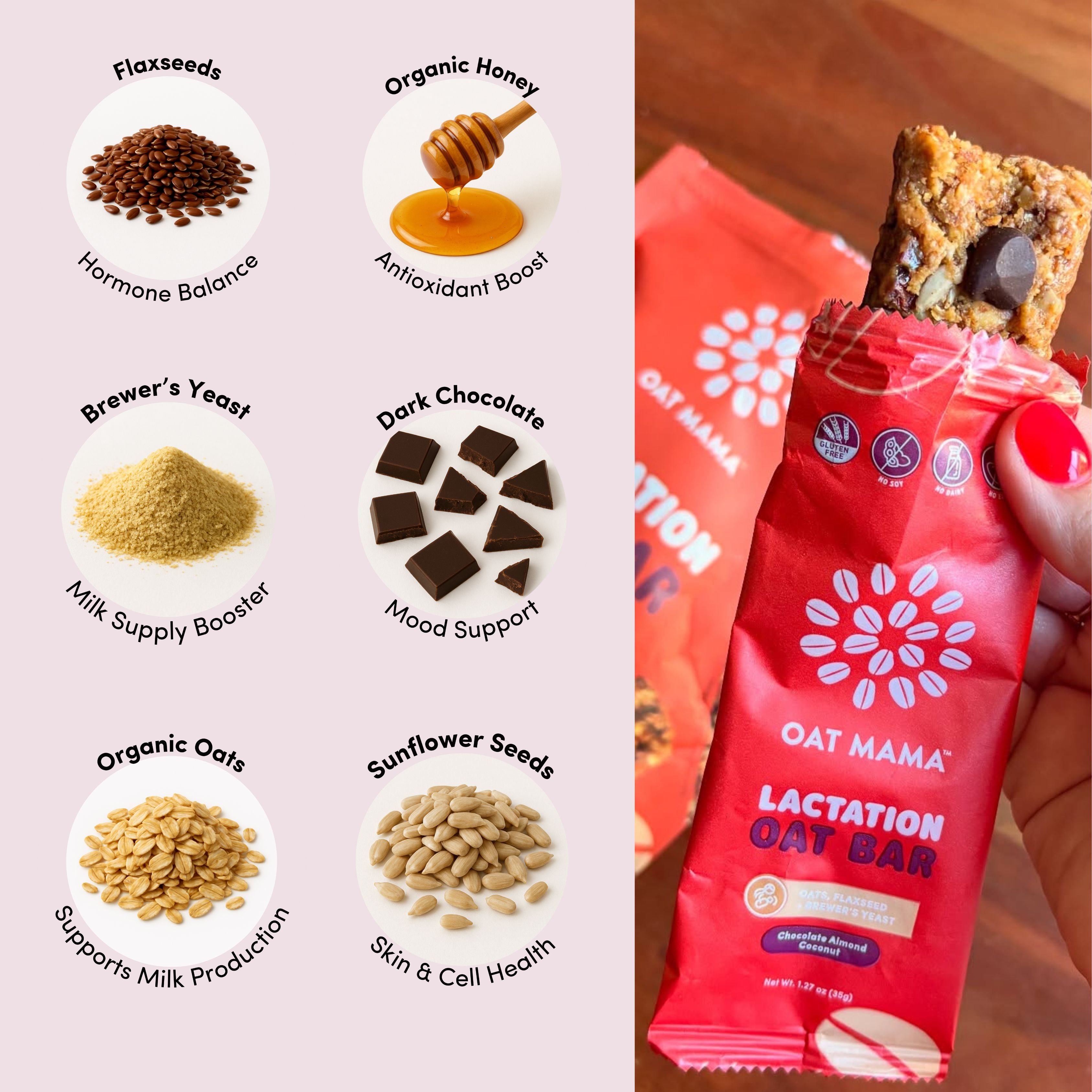 Each bar is made with whole-food galactagogues — ingredients trusted for generations and scientifically combined to support milk production in a way your body can actually use.